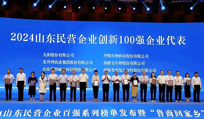 7月26日,2024年山东民营企业百强系列榜单发布暨“鲁商回家乡”活动在滨州市博兴县举行。会上,发布了“2024年山东民企200强”“创新100强”“吸纳就业100强”等榜单。金城医药集团继2022年、2023年获评后再度荣获山东民营企业创新100强荣誉。